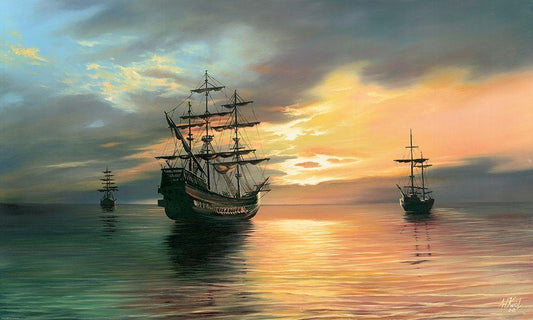 Pirate Bay White Modern Wood Framed Art Print with Double Matting by Krol, Wieslaw