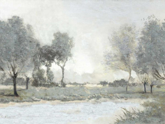 Landscape with River White Modern Wood Framed Art Print with Double Matting by Adamov, Alexey