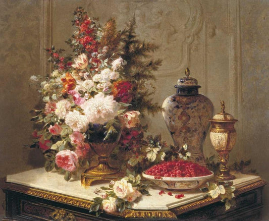 Tulips and other flowers White Modern Wood Framed Art Print with Double Matting by Robie, Jean Baptiste