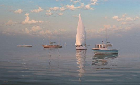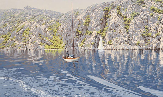 Yachts between Islands White Modern Wood Framed Art Print with Double Matting by Adamov, Alexey