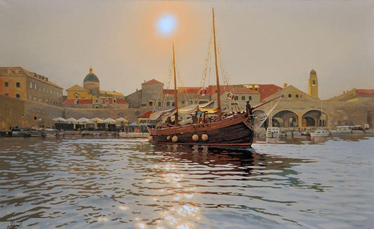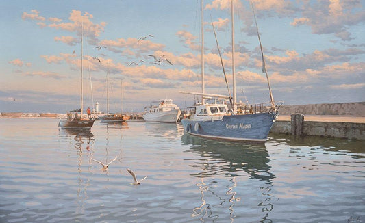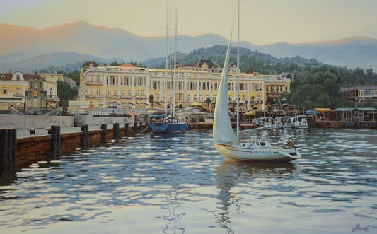 Port of Yalta White Modern Wood Framed Art Print with Double Matting by Adamov, Alexey