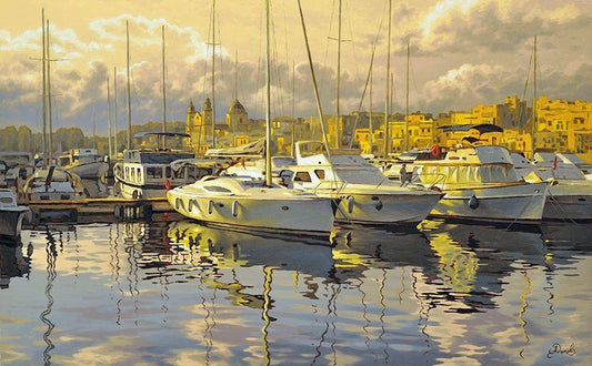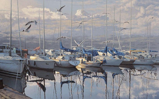 Port with yachts White Modern Wood Framed Art Print with Double Matting by Adamov, Alexey