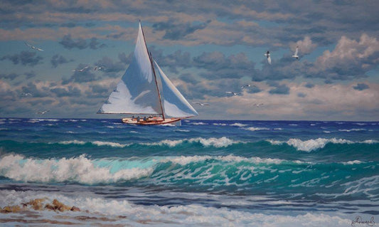 Yacht Marine White Modern Wood Framed Art Print with Double Matting by Adamov, Alexey
