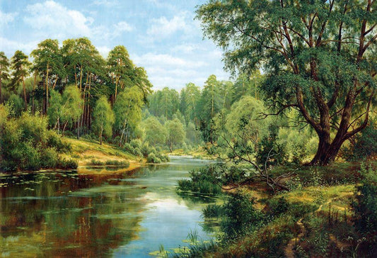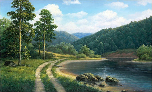 Way by the River White Modern Wood Framed Art Print with Double Matting by Babicev, Vjaceslav