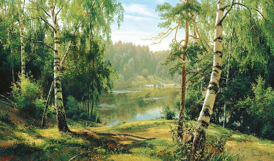 Russian Landscapes I White Modern Wood Framed Art Print with Double Matting by Babicev, Vjaceslav