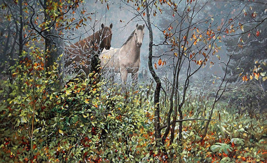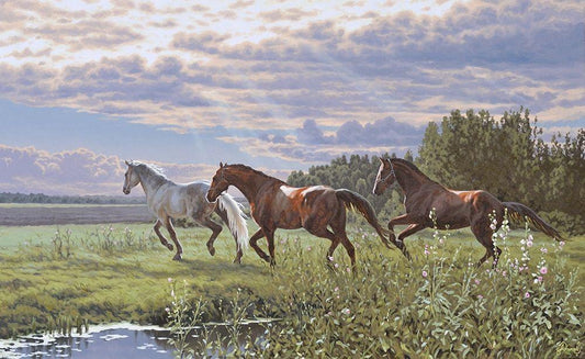 Three Running Horses White Modern Wood Framed Art Print with Double Matting by Adamov, Alexey