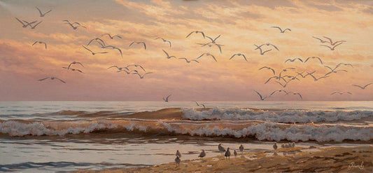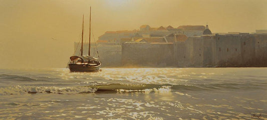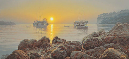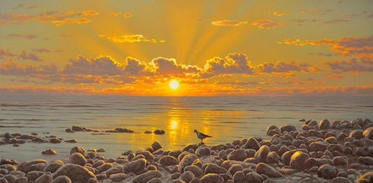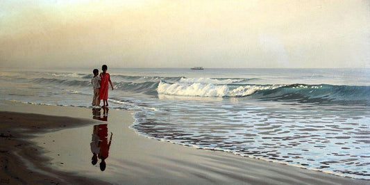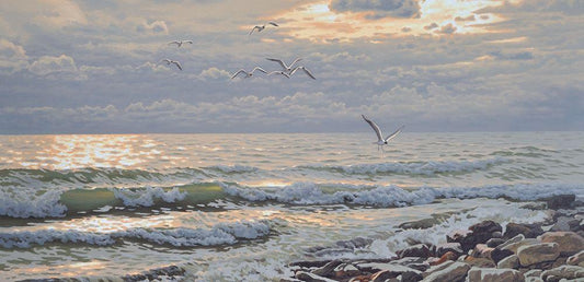 Evening by the Sea White Modern Wood Framed Art Print with Double Matting by Adamov, Alexey