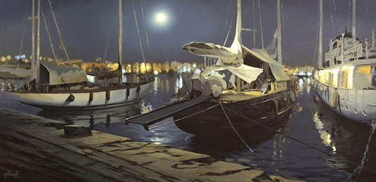 A Night Port White Modern Wood Framed Art Print with Double Matting by Adamov, Alexey