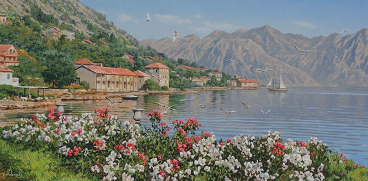 Kotor Bay White Modern Wood Framed Art Print with Double Matting by Adamov, Alexey