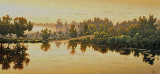 By the River White Modern Wood Framed Art Print with Double Matting by Adamov, Alexey