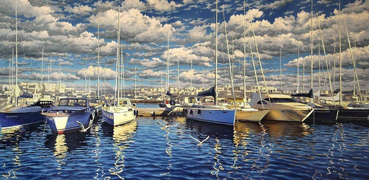 Yachts in Port White Modern Wood Framed Art Print with Double Matting by Adamov, Alexey