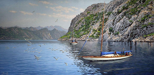 By the Sea White Modern Wood Framed Art Print with Double Matting by Adamov, Alexey