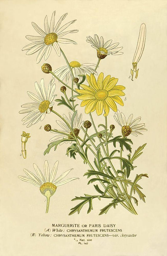 Paris Daisy, Marguerite White Modern Wood Framed Art Print with Double Matting by Anonymous