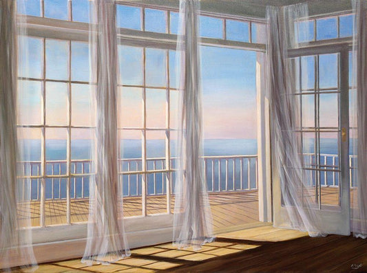 Morning Breeze White Modern Wood Framed Art Print with Double Matting by Saxe, Carol