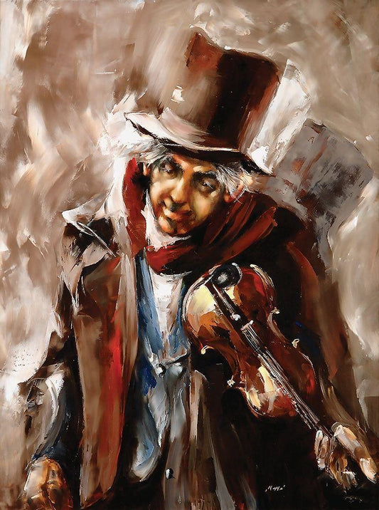 The Fiddler White Modern Wood Framed Art Print with Double Matting by Sipos, Judit