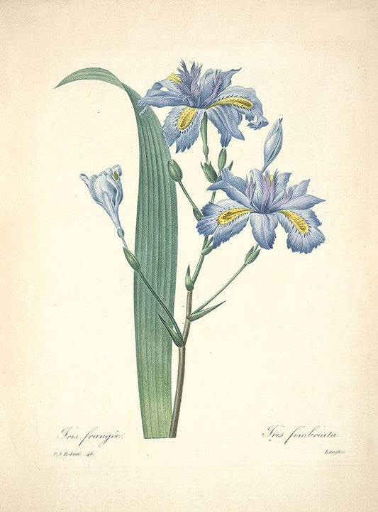 Iris Frangee White Modern Wood Framed Art Print with Double Matting by Redoute, P. J.