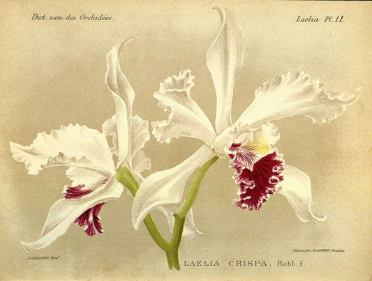 Orchid, Laelia Crispa White Modern Wood Framed Art Print with Double Matting by Goossens, A.