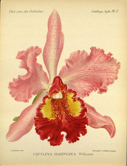 Orchid, Catlleya Hardyana White Modern Wood Framed Art Print with Double Matting by Goossens, A.