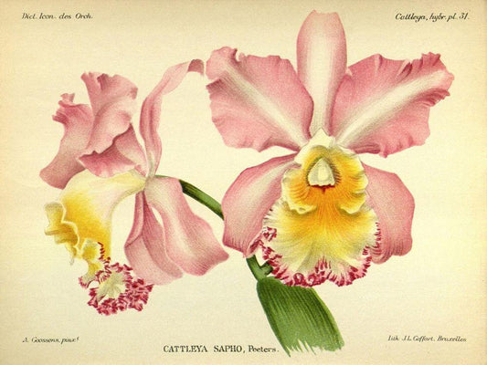 Orchid, Cattleya Sapho White Modern Wood Framed Art Print with Double Matting by Goossens, A.