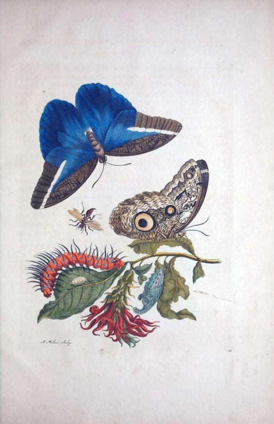 Tropical fruit, Butterfly, plate16 White Modern Wood Framed Art Print with Double Matting by Merian, Sybilla