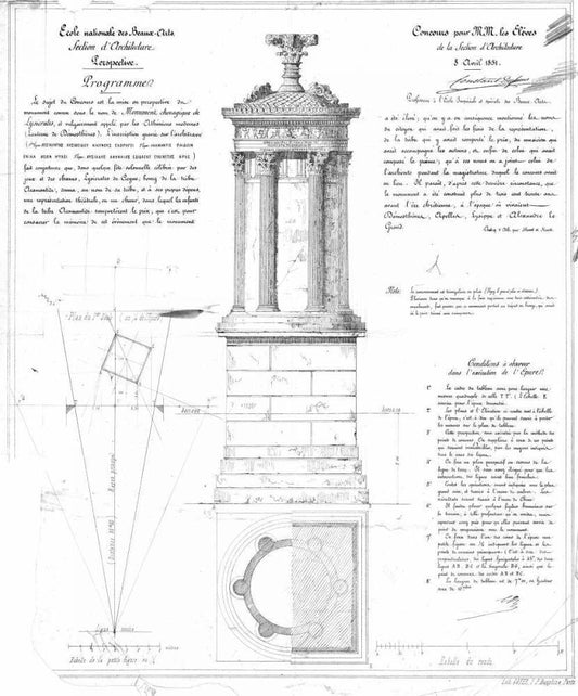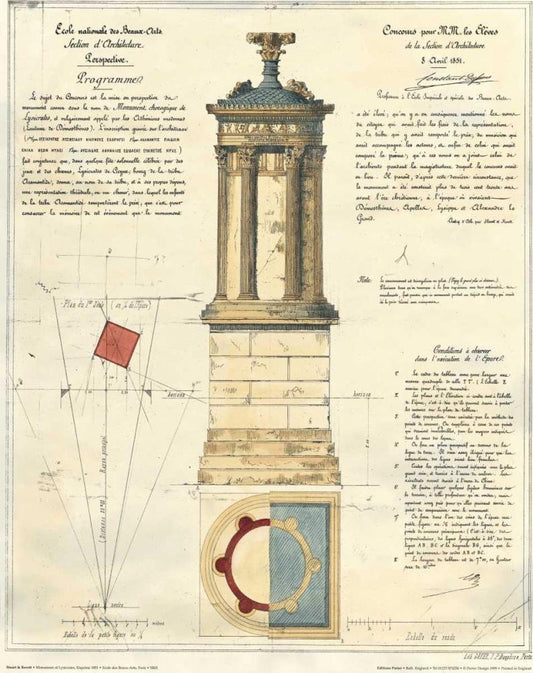 Tower of Lysicrates White Modern Wood Framed Art Print with Double Matting by Stuart and Revett