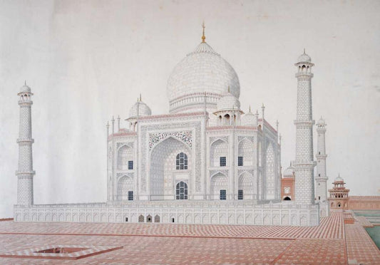 The Taj Mahal White Modern Wood Framed Art Print with Double Matting by Anon, Mughal 1813