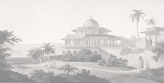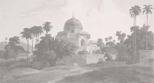 Mausoleum at Chunar Gur, Sepia White Modern Wood Framed Art Print with Double Matting by Daniells, Thomas and Wm