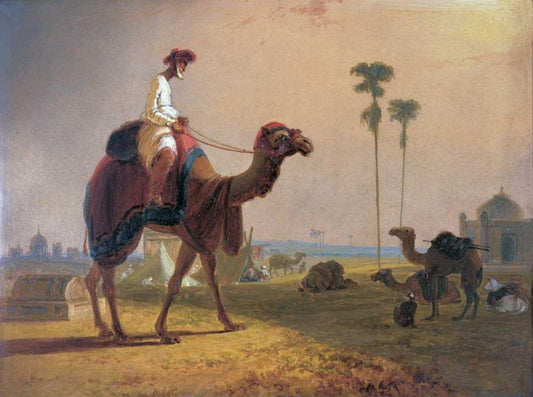 Camel and Rider White Modern Wood Framed Art Print with Double Matting by Daniell, William