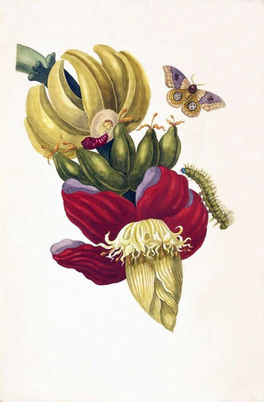 Banana, Butterfly, plate13 White Modern Wood Framed Art Print with Double Matting by Merian, Sybilla