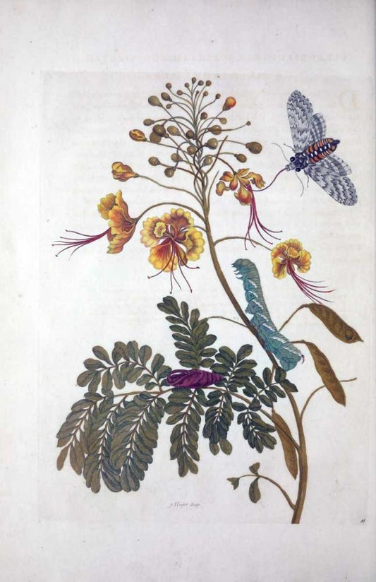 Tropical flower,Butterfly, plate 45 White Modern Wood Framed Art Print with Double Matting by Merian, Sybilla
