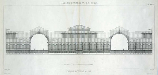 Les Halles, Paris, South Facade White Modern Wood Framed Art Print with Double Matting by Baltard, Victor