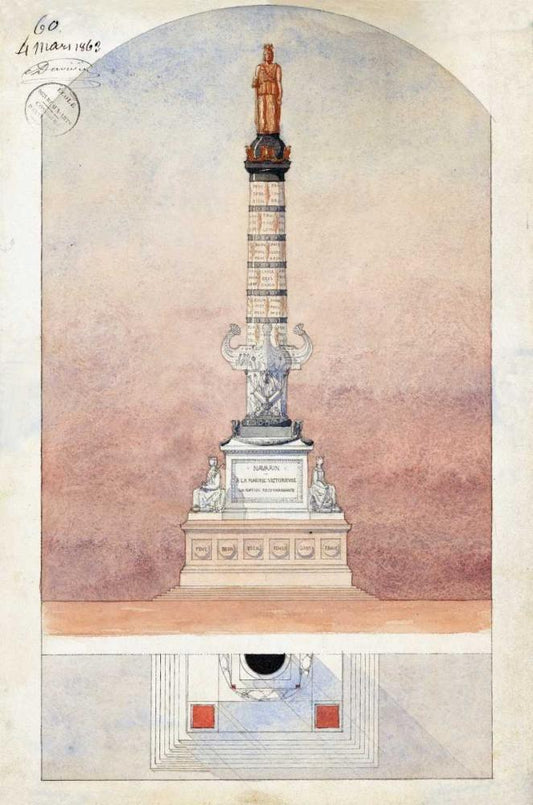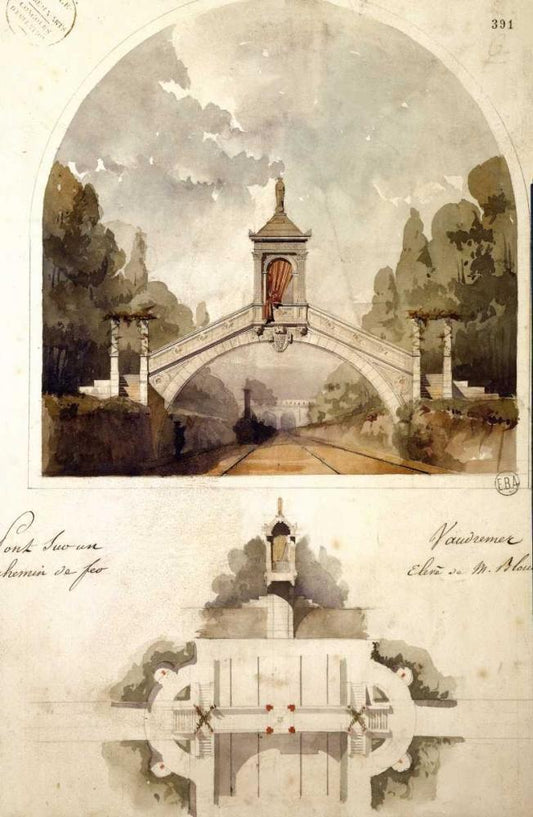 Design for a Railway Bridge White Modern Wood Framed Art Print with Double Matting by Vaudremer, Emile