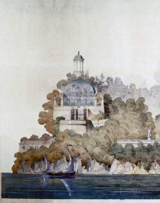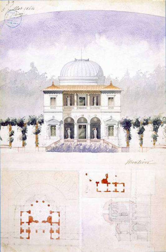 Vast Hostelry, West Elevation White Modern Wood Framed Art Print with Double Matting by Postolle, Victor