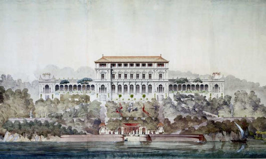 Lucknow White Modern Wood Framed Art Print with Double Matting by Daniells,Thomas and Wm