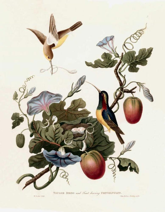Taylor Birds White Modern Wood Framed Art Print with Double Matting by Hooker, William