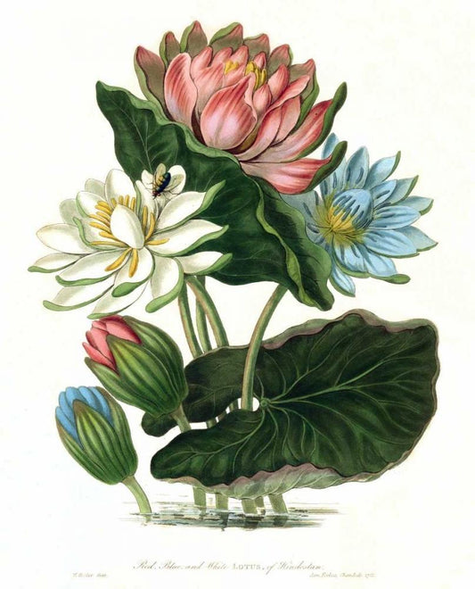 Lotus White Modern Wood Framed Art Print with Double Matting by Hooker, William