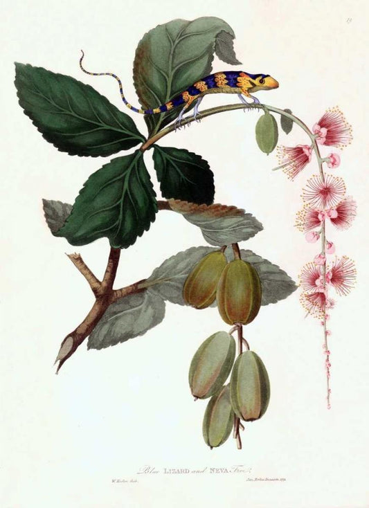 Lizard on Flower White Modern Wood Framed Art Print with Double Matting by Hooker, William