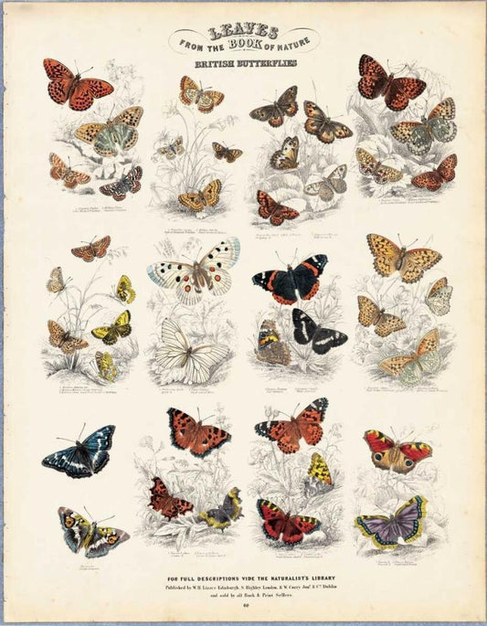 British Butterflies White Modern Wood Framed Art Print with Double Matting by Lizars, WH