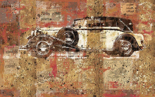 Vintage Red Car White Modern Wood Framed Art Print with Double Matting by Wiley, Marta