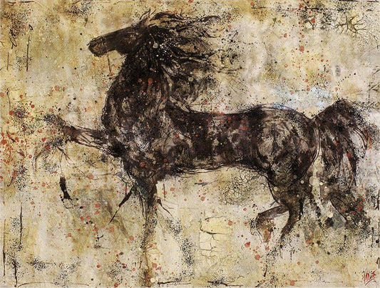 Horse And Crackle White Modern Wood Framed Art Print with Double Matting by Wiley, Marta