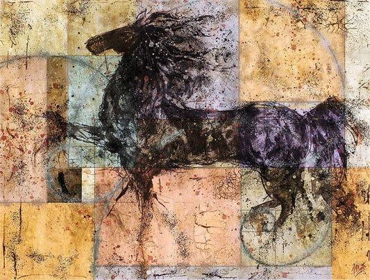 Horse And Squares White Modern Wood Framed Art Print with Double Matting by Wiley, Marta