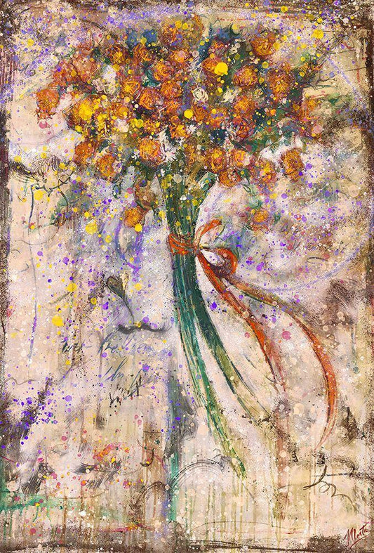 Floral bouquet Yellow White Modern Wood Framed Art Print with Double Matting by Wiley, Marta