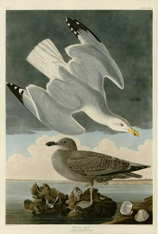 Herring Gull White Modern Wood Framed Art Print with Double Matting by Audubon, John James