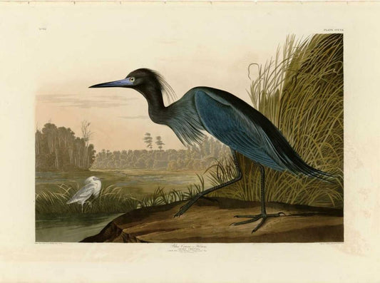 Blue Crane or Heron White Modern Wood Framed Art Print with Double Matting by Audubon, John James