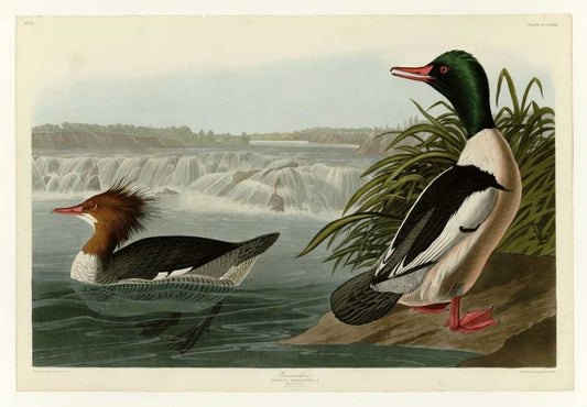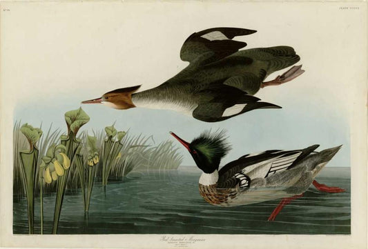 Red Breasted Merganser White Modern Wood Framed Art Print with Double Matting by Audubon, John James
