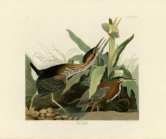 Green Heron White Modern Wood Framed Art Print with Double Matting by Audubon, John James
