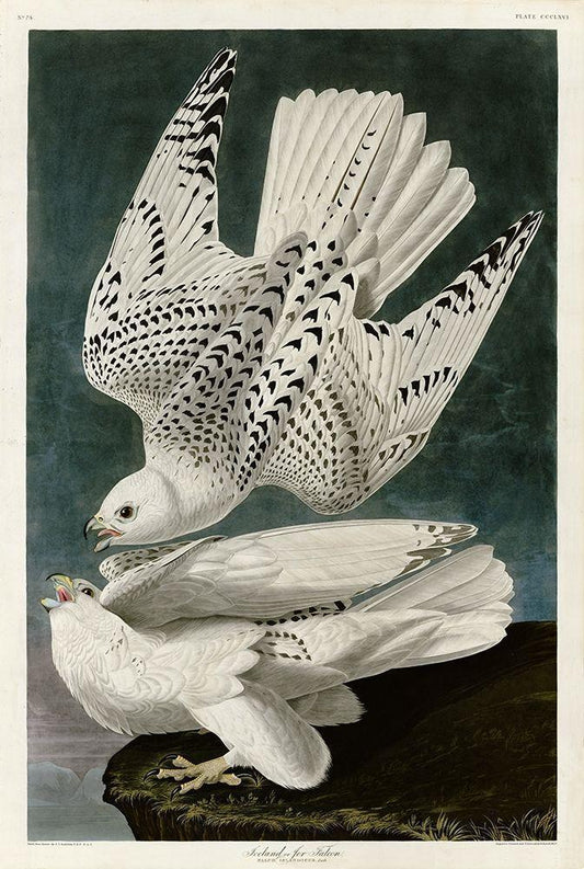 Iceland Falcon White Modern Wood Framed Art Print with Double Matting by Audubon, John James
