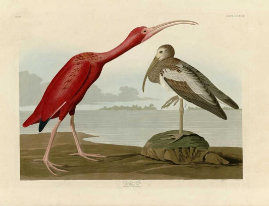 Scarlet Ibis White Modern Wood Framed Art Print with Double Matting by Audubon, John James