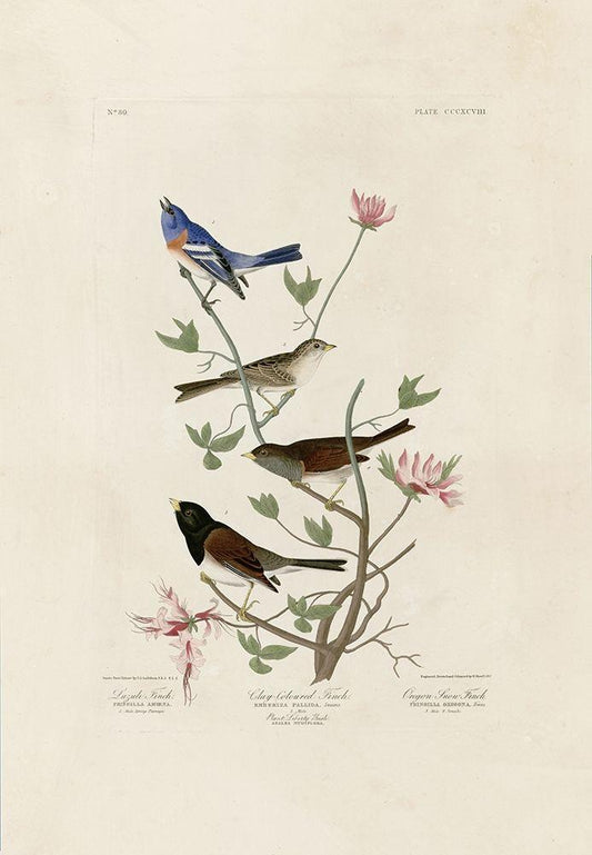 Finches White Modern Wood Framed Art Print with Double Matting by Audubon, John James
