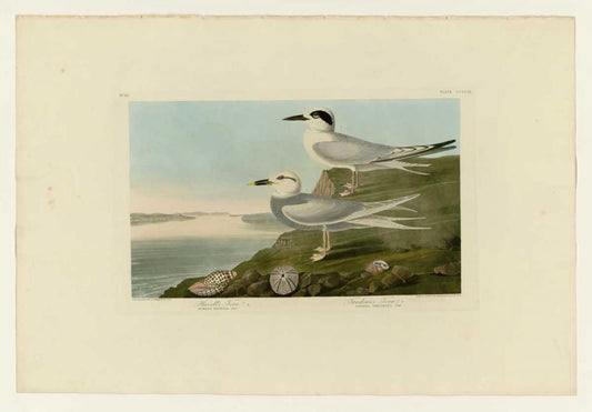 Trudeaus Tern White Modern Wood Framed Art Print with Double Matting by Audubon, John James